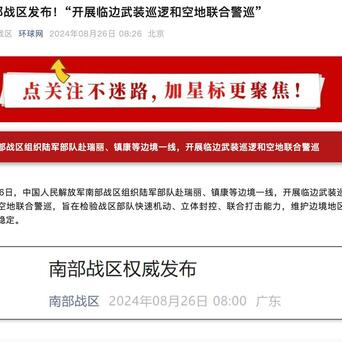 【解放军出手了!这下该看清楚缅北武装是黑是白了】南部战区26日上午连发两条公告,宣布在中缅边境地区开展武装巡逻和空地联合警巡,并且在瑞丽、镇康、孟定三个边陲地区举行“实兵实弹演习”。公告里面必须特别注意一句话:此举是为了“维护边境地区安全稳定”。也就是说,现在谁还在破坏该地区的“安全稳定”,谁就是我们认定的“敌我矛盾”之中的“敌”。